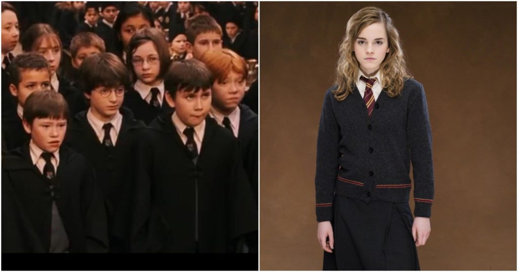 Cuando hablamos de las túnicas de Harry Potter, casi todos imaginan el estilo de albornoz negro que se abrocha cerca del cuello. ¿Por qué no lo haríamos? Todas las versiones de las túnicas de Harry Potter que han aparecido en la pantalla han sido diseñadas de esta manera. Pero, los lectores con ojos de águila sabrán que esta no es la forma en que los estudiantes de Hogwarts se visten en las páginas de la serie de libros. Así es, en el libro, las túnicas funcionan más como camisetas, ya que los estudiantes se las ponen sobre la cabeza, probablemente ocultando cualquier tipo de ropa o uniformes que existan debajo.