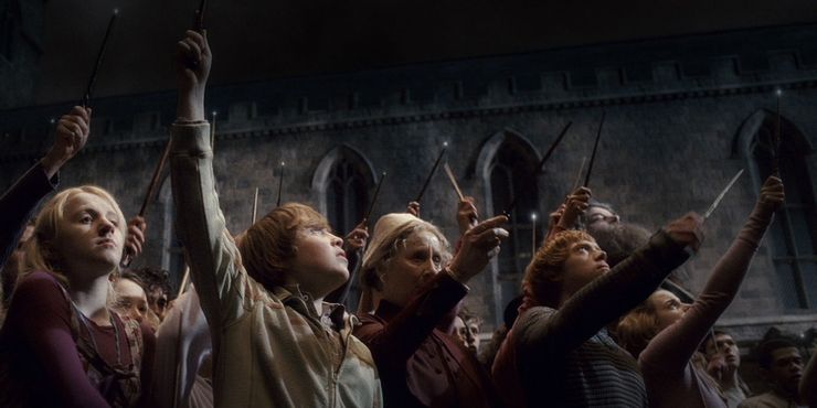 Uno de los momentos más mágicos de toda la franquicia, no solo esta película, es cuando Dumbledore ha sido asesinado y el personal y los estudiantes de Hogwarts se reúnen al pie de la Torre de Astronomía. Aquí, levantan lentamente sus varitas, con un pequeño punto de luz al final de cada una, llorando y celebrando al gran hombre que murió. Este es también uno de los momentos más tristes de la franquicia, pero la profundidad de la emoción se suma a lo mágico que es, y la sensación de unidad y fuerza de propósito es hermosa.