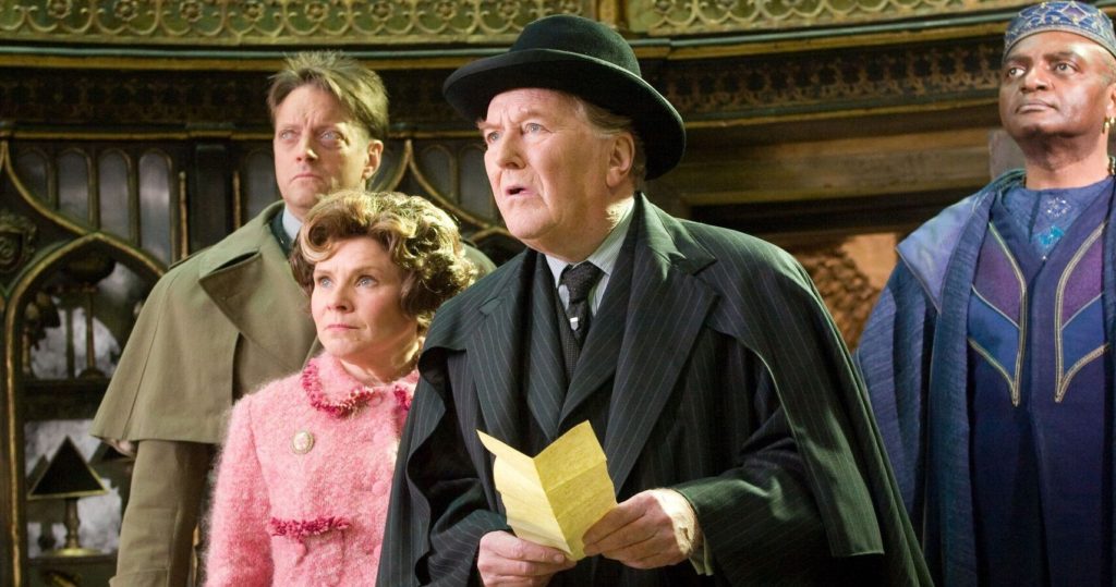 Fudge también opera con una agenda, algo que ningún político debería hacer. Está a favor de echar a Harry de Hogwarts cuando el resto de la gente en el juicio preferiría que se quedara, y es bastante afortunado de no ser el Ministro de Magia asesinado por Voldemort en el Reliquias de la Muerte: Parte 2. Pobre Rufus Scrimgeour …
