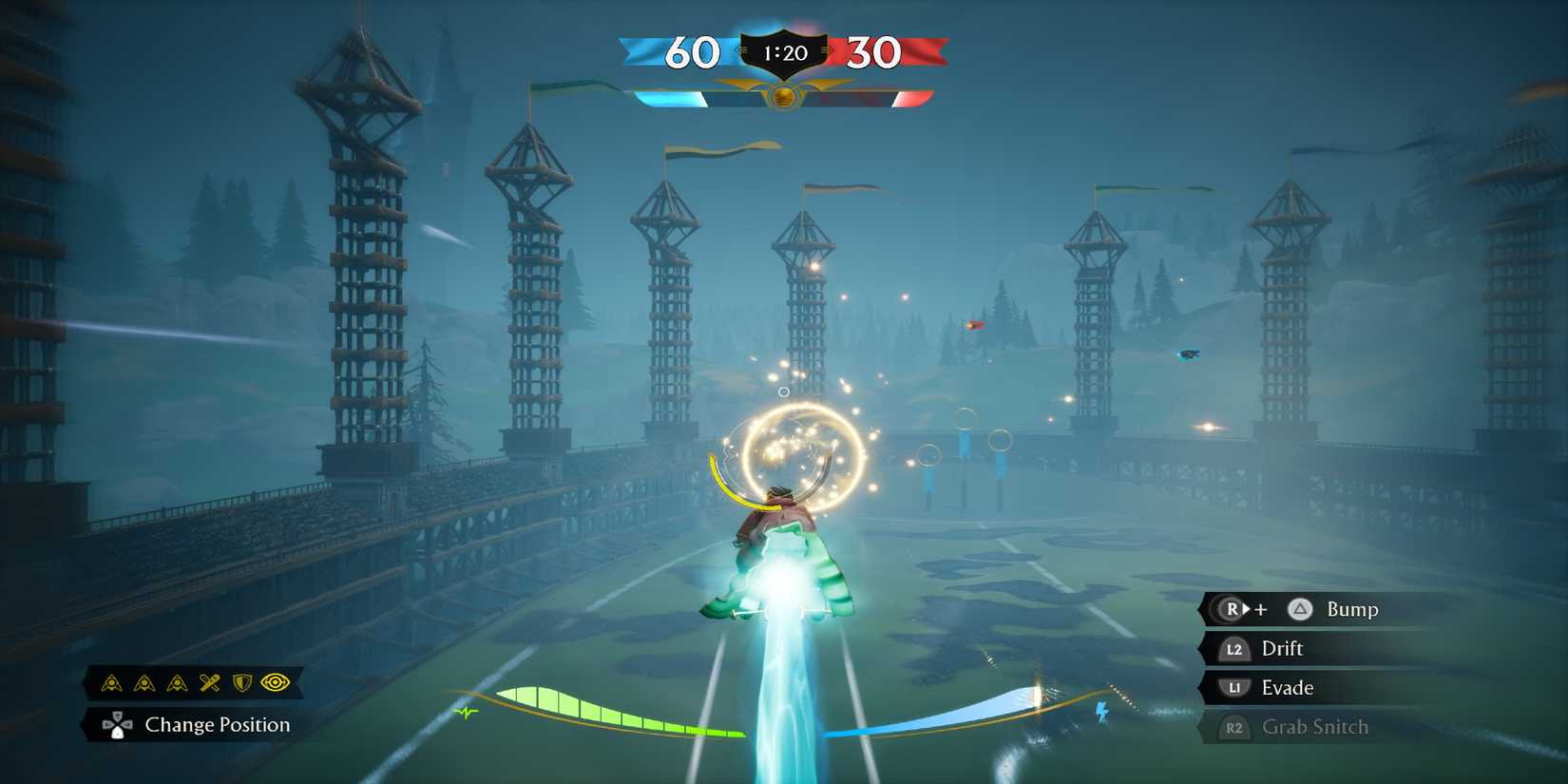 En teoría, atrapar la snitch es solo cuestión de volar a través de tantos anillos como sea posible y superar en vuelo al buscador del equipo contrario (que puede ser uno de los varios personajes jugables del juego). Un medidor lleno se volverá azul, momento en el que el buscador podrá atraparla si está lo suficientemente cerca.
