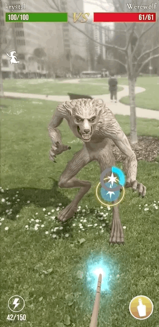 Cuando tocas un encuentro, ingresas a un minijuego AR donde, por ejemplo, deberás lanzar un hechizo para liberar a Buckbeak del grifo de una bola y cadena mágica, o derrotar a un monstruo que amenaza a un personaje de los libros.