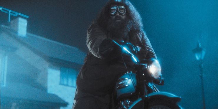 Cuando los fanáticos ven a Hagrid por primera vez, hace un aterrizaje caótico en su motocicleta. Más adelante en la serie, Hagrid queda atónito durante la batalla de los siete Potter, y Harry queda en la motocicleta fuera de control entre el enjambre de Mortífagos.