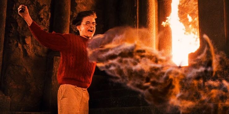 Lucha contra su juego de ajedrez de magos en esto y también se encuentra con el profesor Quirrell, que es una de las mejores escenas dentro de la franquicia. El jersey rojo se destaca enormemente dentro de estas escenas, y eso ayuda a que Harry se vea genial.
