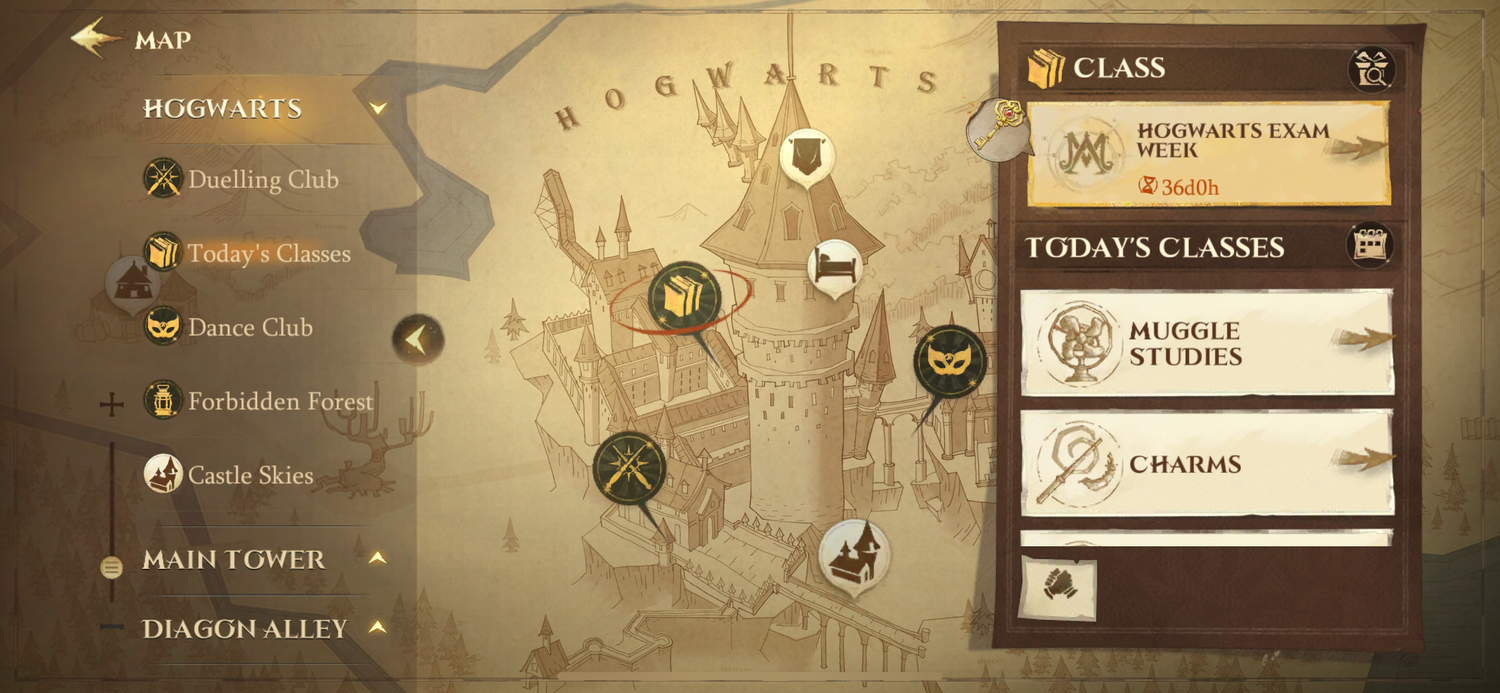 “/> Hay siete clases diferentes para que los jugadores completen, que incluyen Adivinación, Estudios Muggles, Historia de la Magia, Defensa Contra las Artes Oscuras, Cuidado de Criaturas Mágicas, Encantamientos y Estudio de Runas Antiguas. Si bien algunas de estas clases son similares, como Estudios Muggles e Historia de la Magia, que consisten en realizar un cuestionario de 10 preguntas sobre un tema en particular, otras son un poco más desafiantes y únicas.