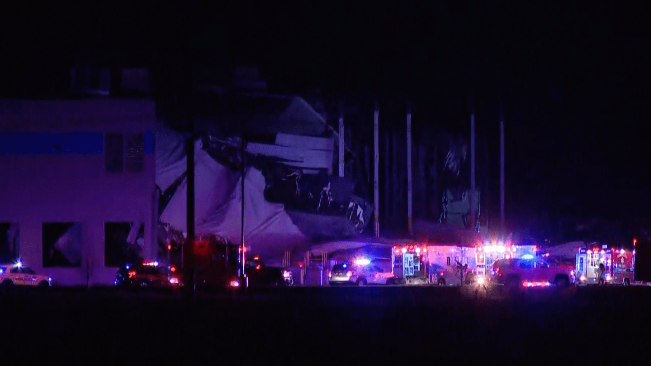 El derrumbe del edificio fue reportado poco después de que un tornado tocase tierra en esa localidad, cerca de las 8:30 p.m. hora local (2:30 hora GMT).