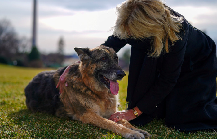 La primera dama, Jill Biden, y Champ, uno de los perros de los Biden || Foto: Reuters