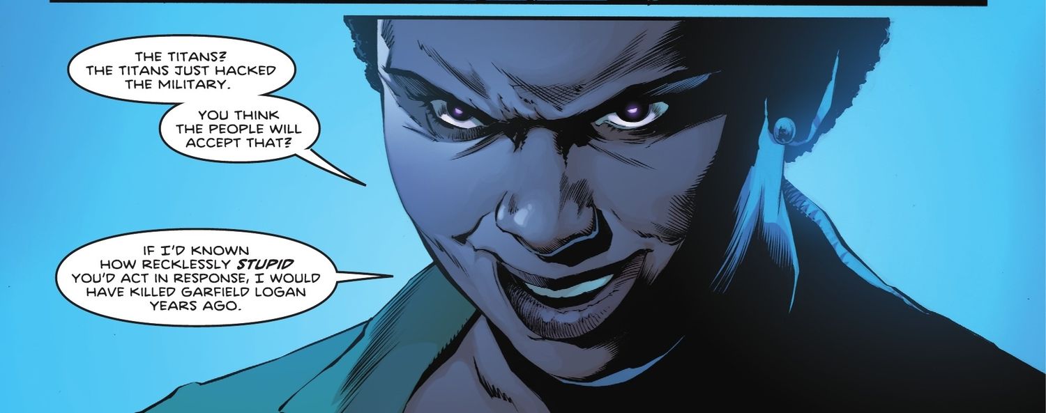 Después del fallido intento de Nightwing de persuadir a Waller para que suspenda el ataque con drones, se ve obligado a tomar medidas drásticas y le ordena a Cyborg que piratee y modifique las órdenes de los drones militares. A pesar de que esta decisión salvó más de un millón de vidas, Waller observa astutamente que el mundo no lo percibirá de esa manera. En cambio, La gente se centrará en la capacidad de los Titanes para acceder y controlar los arsenales más formidables del mundo.. Esto podría llevar a la difamación de los Titanes a los ojos del mundo, poniendo en peligro su papel como protectores de la Tierra y transformándolos en adversarios en lugar de aliados.
