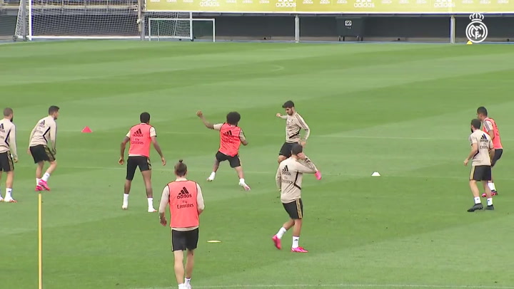 Zidane recuperó el partido a todo campo tras bajar el ritmo el miércoles. Tercer encuentro en cuatro días de entrenamientos para que sus jugadores vayan recuperando sensaciones perdidas en el confinamiento. La mejor noticia para el técnico madridista fue ver la actuación de Hazard. El belga firmó un triplete y se llevó el aplauso con un gol de gran belleza con su pie derecho.