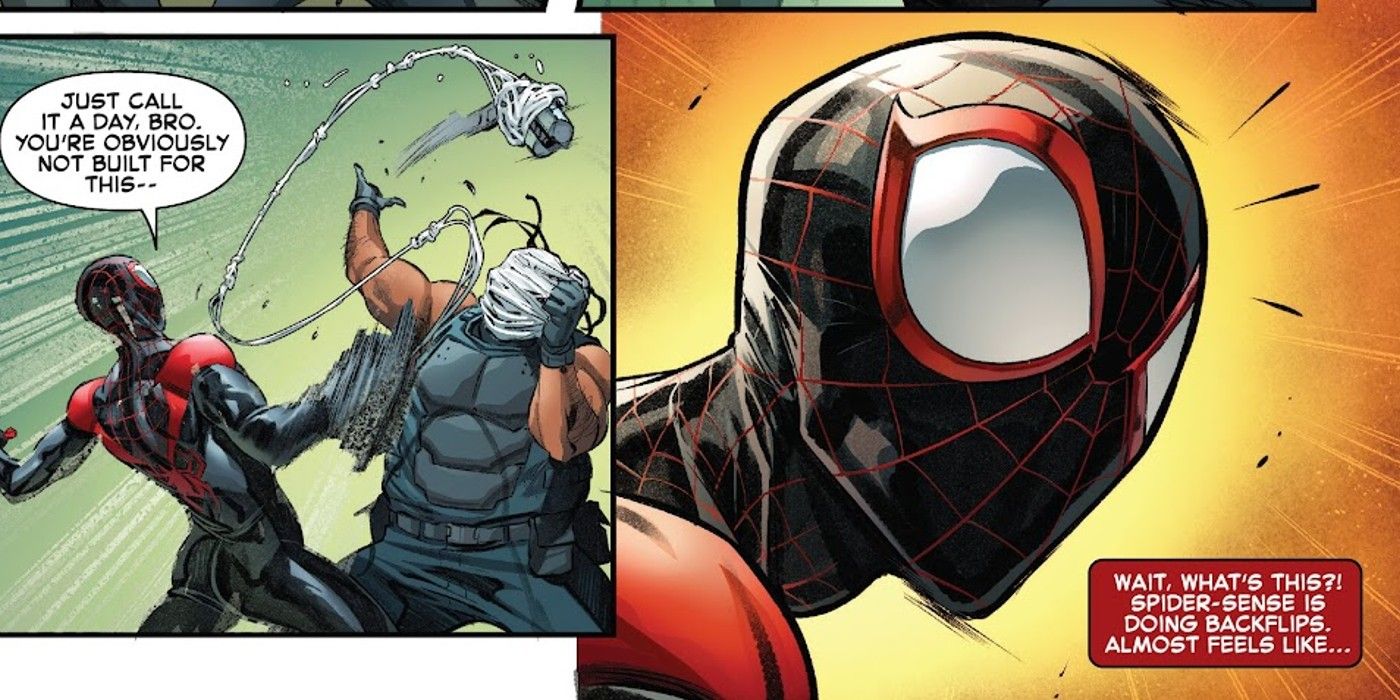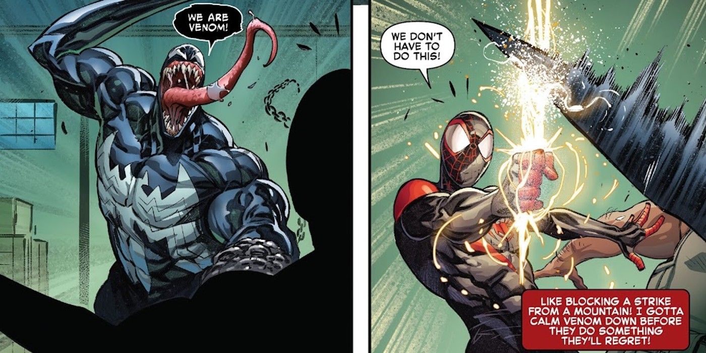 Como se mencionó anteriormente, la mayor debilidad de Peter Parker como Spider-Man contra Venom es su sentido arácnido. Debido a que estuvo vinculado a ese simbionte hace mucho tiempo, no puede sentir cuando Venom viene en su dirección, lo que lo convierte en un blanco fácil. Miles, por otro lado, a pesar de no haber conocido nunca a Dylan antes, siente su sentido arácnido. “haciendo volteretas hacia atrás” siempre que el simbionte esté cerca. Incluso lo reconoce exactamente como el simbionte de Venom momentos antes de que Venom irrumpa en escena. Por la misma espada, el sentido arácnido de Miles evoluciona constantemente de una manera que nunca lo hizo para Peter y de una manera para la que Venom simplemente no puede prepararse.