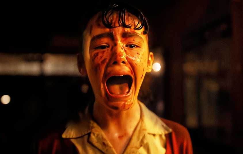 El niño solicita que lo tomen “en cualquier lugar que no sea Derry“Y aunque la familia es acogedora al principio, eventualmente se vuelven contra él. Vuelven de regreso a Derry, y el niño intenta salir del auto. La madre embarazada tiene algo que se mueve debajo de su piel y el hijo de repente tiene ojos de centavo.