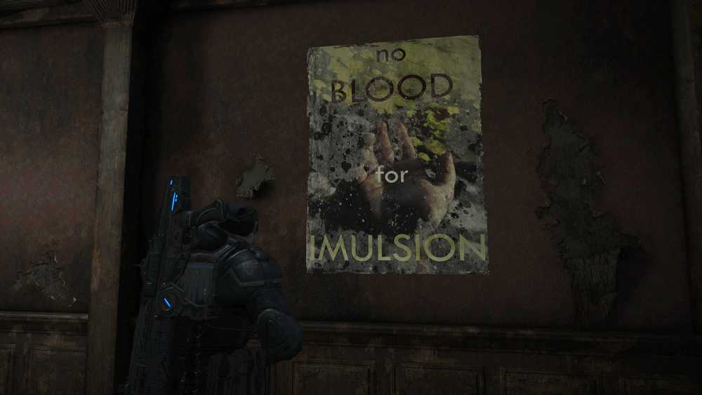 Quizás el póster más interesante que encontré en Recargado es uno estampado con “Sin sangre para la imulsión. “Hay muy poco contexto para esto proporcionado por el original Engranaje en sí, pero es un póster de las Guerras Anti-Pedo. Antes de la Guerra de Locust, el COG se vio envuelto en un conflicto de 79 años conocido como las Guerras del Péndulo. Hay mucha historia establecida para las Guerras del Péndulo, incluidos los orígenes del elenco de la mayoría de la serie de juegos, pero los golpes amplios son que fue una guerra que el engranaje libró contra la unión de las repúblicas independientes sobre la imulsión.