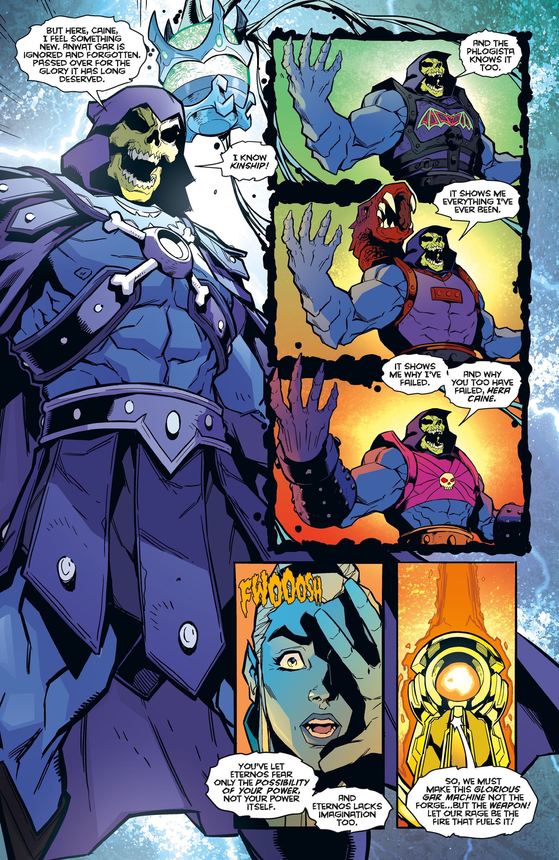 Maestros del Universo: Forja del Destino El número 3 está escrito por Tim Seeley y dibujado por Eddie Nunez. La Phlogista ahora está en manos de Skeletor, y él comienza a aprovechar su magia para sí mismo. Skeletor se jacta del poder que fluye a través de él, diciendo que Phlogista le muestra “todo” lo que ha sido y por qué ha fracasado repetidamente a lo largo de los años. A medida que los poderes de Skeletor crecen, pasa por tres estilos diferentes, incluido uno en el que lleva un peto blindado, otro con un dragón en la espalda y otro en el que tiene garras largas.