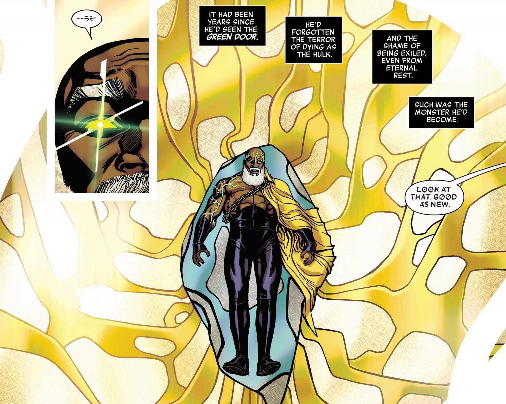 En este tema, Luke Cage enfrenta una amenaza extradimensional que corta sin esfuerzo a través del héroe. La jaula se escinde en dos, dejada para flotar sin vida a través del espacio. Sin embargo, como un mutado gamma, la muerte es solo un estado temporal para Luke Cage. Mientras se recupera de sus heridas, el problema retrata La experiencia abismal del héroe frente a la puerta verde. “Había olvidado el terror de morir como Hulk. Y la vergüenza de ser exiliado, incluso del descanso eterno “. Hay
