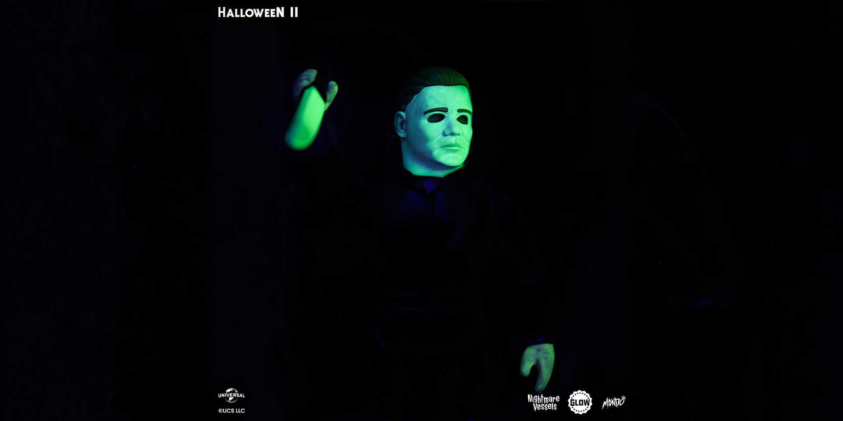 Nightmare Vessels – Halloween II – Brilla en la oscuridad Exclusivo de Mondo. Diseño conceptual y pintura por Héctor Arce. Esculpido por Aaron McNaught. Arte del empaque de Jordan Christianson y Brett Parson (arte cómico del panel posterior). Diseño de packaging por Jordan Christianson. Fotografía de Raúl Barrero. Dirección de arte de Héctor Arce y Peter Santa-Maria.
