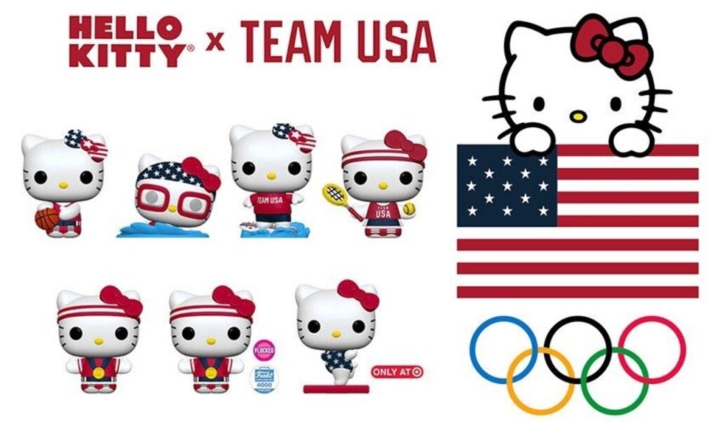 En este momento, los fanáticos saben poco sobre la línea completa de piezas cruzadas, pero está comenzando con vinilos Funko Pop. Se ha presentado un conjunto de siete que muestra a Hello Kitty como parte del equipo de EE. UU. Las figuras representan al ícono mientras juega baloncesto, nada, prepara una rutina de gimnasia e incluso celebra una medalla de oro. Sanrio ha dicho que vendrán más artículos en la línea, incluidas camisetas, juguetes, coleccionables y más.