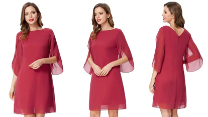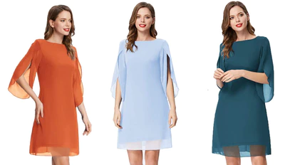 Este vestido tipo cóctel incorpora unas mangas de gasa con aberturas para favorecer los movimientos y crear un ligero efecto capeado. Se puede combinar con zapatos de tacón o planos y, gracias la variedad de tonos y estampados en los que se oferta, resulta muy fácil de adaptar a ocasiones como bodas, cócteles, fiestas formales u otras ocasiones especiales. Está disponible en tallas que van de la S a la XXXL y las recomendaciones del fabricante para mantenerlo en buen estado son lavarlo a mano o en seco.
