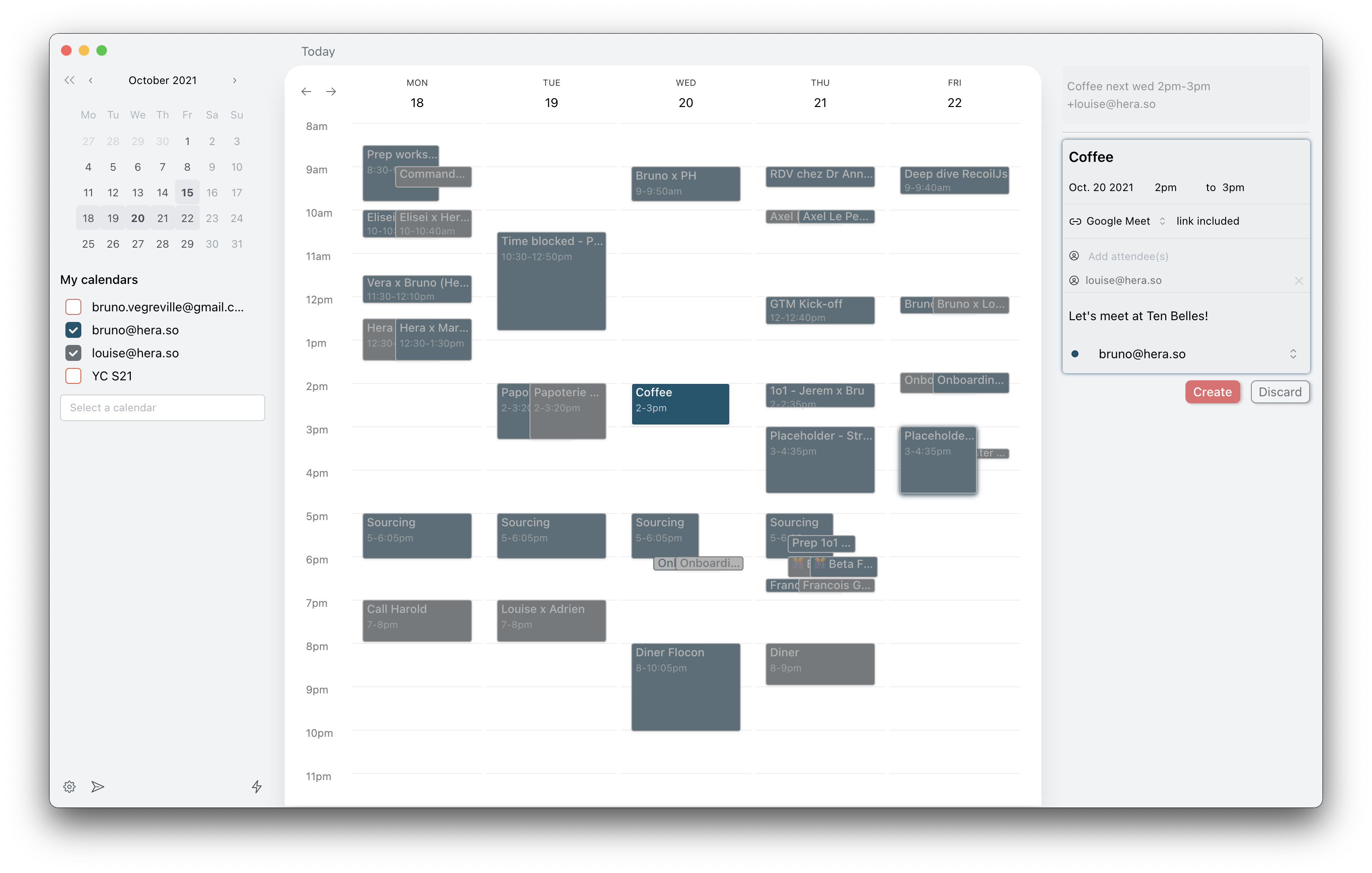 Hera ha estado en beta privada durante los últimos meses. La visión de la startup es bastante clara. Algunas herramientas de productividad, como Superhuman, han hecho que las personas sean más eficientes cuando se trata de clasificar hilos y actuar en los correos electrónicos entrantes. Si considera las reuniones como hilos, Hera podría convertirse en la Superhumana de los calendarios.