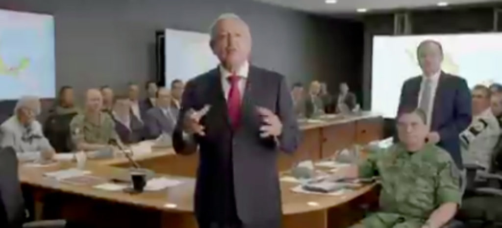 De cara a su primer informe de gobierno, en un spot de 30 segundos grabado en sus oficinas con su gabinete de seguridad, el Ejecutivo federal sostuvo que “aquí estamos como todos los días de seis a siete de la mañana de lunes a viernes”.