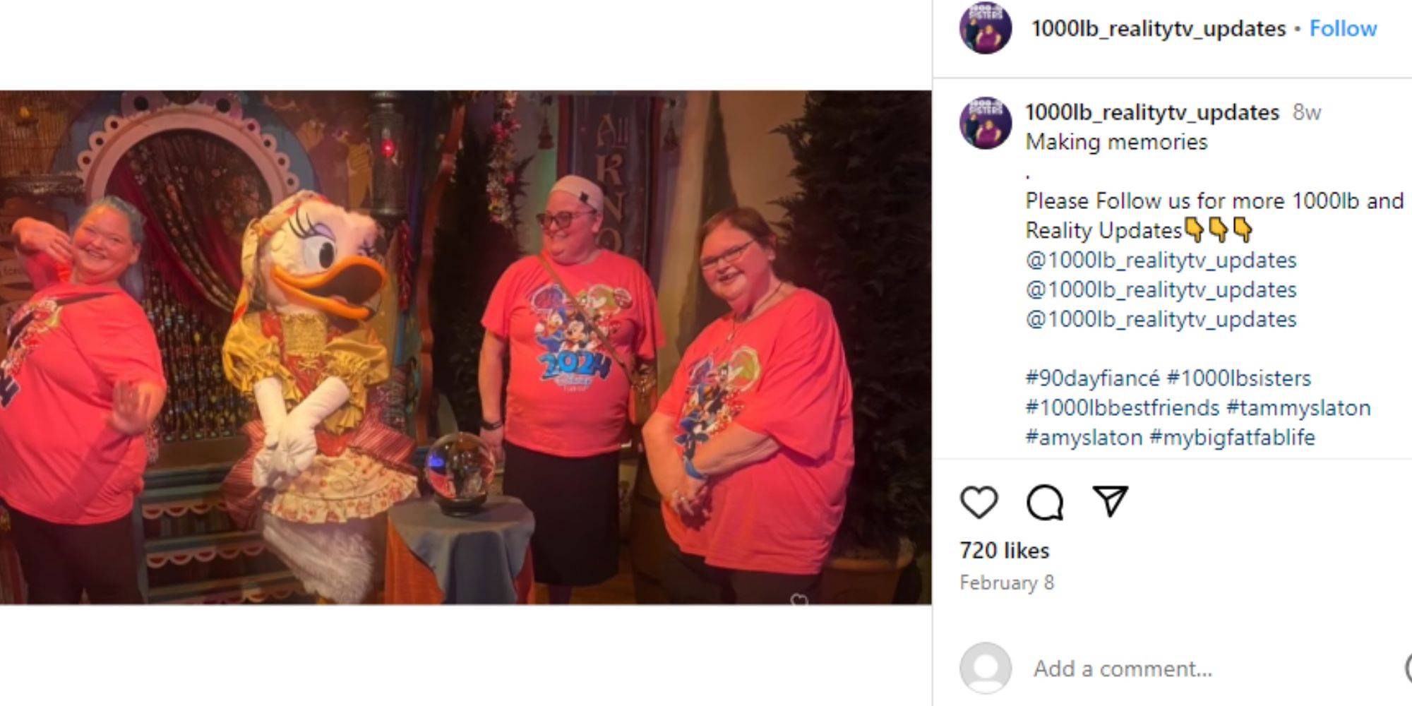 Todo el clan Slaton ama Disney. En febrero, el Hermanas de 1000 libras Cuenta de fan 1000lb_realitytv_updates publicó una foto de la familia Slaton en Instagram. En la foto, Tammy, Amy y su cuñada, Brittany Combs, con camisetas rosas con gráficos de Disney a juego, posan junto a Daisy Duck. Tammy y Amy dijeron Gente que los orígenes de su aumento de peso se remontan a su infancia, y lo atribuyen a la genética, la alimentación emocional y factores socioeconómicos.. “siempre he tenido un problema de peso“, dijo Tammy. “Nací con 9 libras. 10 onzas, y luego seguí aumentando,“, dijo en ese momento.