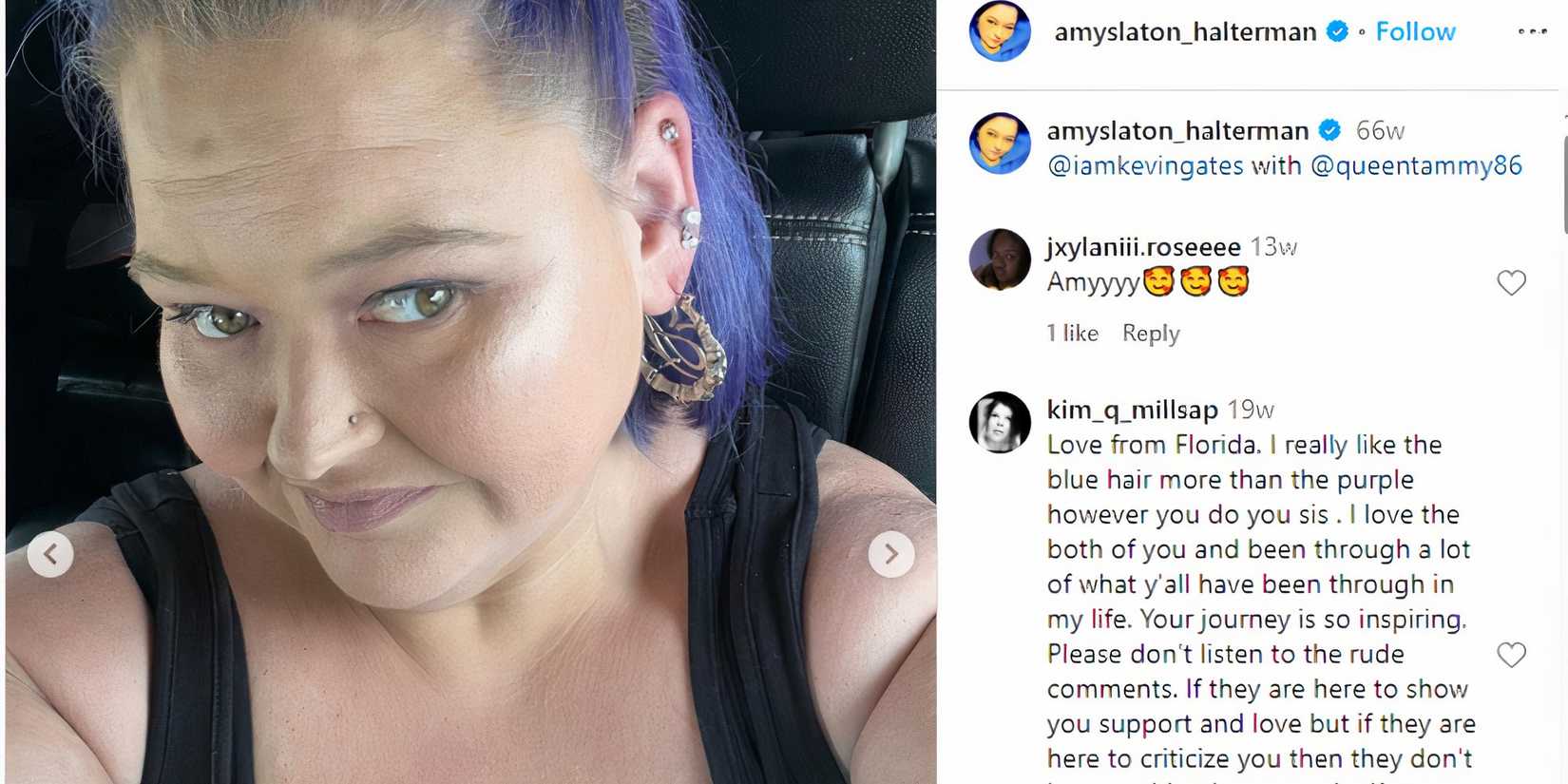 Nadie ama los filtros de fotos más que Amypero en mayo de 2023, el Hermanas de 1000 libras La estrella de la quinta temporada publicó una rara foto de ella misma en primer plano sin filtro. Tal vez de 36 años. Amy se cansó de que sus detractores siguieran acusándola de ser insegura.y quería demostrarles que estaban equivocados publicando una foto suya sincera. En la imagen, Amy lleva una camiseta sin mangas negra y tiene el pelo morado atado hacia atrás mientras mira a la cámara con timidez.