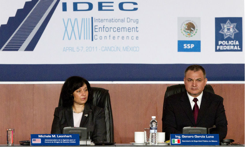 • La administradora de la Agencia para el Control Antidrogas de Estados Unidos, Michele M. Leonhart junto a García Luna. Foto: Reuters