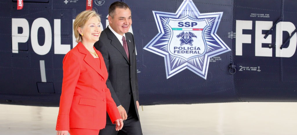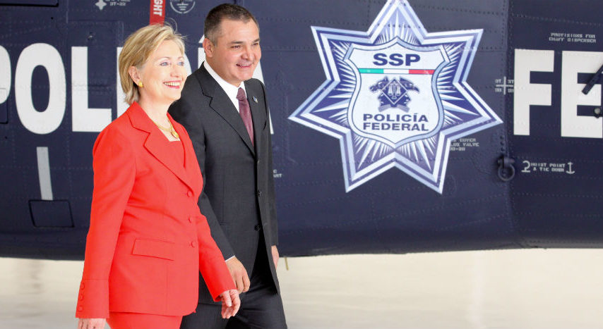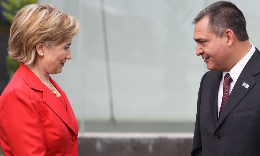 • 26 de marzo 2009. Quien fuera en aquel entonces secretaria de Estado Norteamérica, Hillary Clinton, junto a el exfuncionario Genaro García Luna. Foto: Cuartoscuro/Moisés Pablo