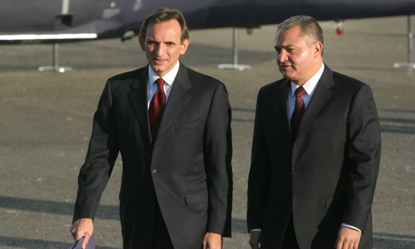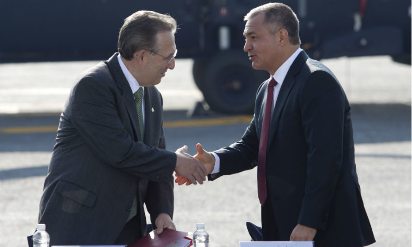 • Carlos Pascual, embajador de Estados Unidos en México y Genaro Garcia Luna durante la entrega de tres helicópteros tipo Black Hawk entregados por el gobierno de EU. Foto: Cuartoscuro/Saúl López