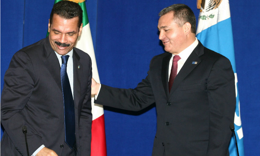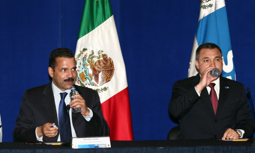 • Ronald K. Noble, Secretario General de la Interpol con Genaro García en conferencia de prensa. 2009. Foto: Cuartoscuro.