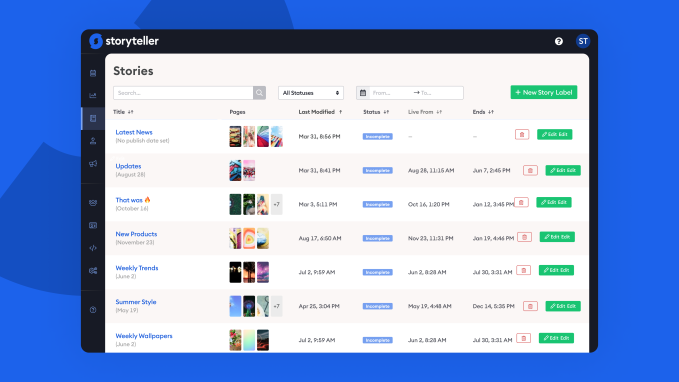 Iniciada por Snapchat y clonada por Instagram, la función “Historias” se ha convertido en un elemento básico para las aplicaciones móviles de hoy en día, desde la búsqueda de Google hasta Pinterest, aplicaciones de transmisión y más. Y aunque la adición no funciona para todos (LinkedIn y Twitter cerraron recientemente sus funciones de Historias, por ejemplo), hay suficiente demanda de Historias en el mercado que una empresa llamada Storyteller ha logrado crear un negocio generador de ingresos que ofrece ” Historias como servicio “.