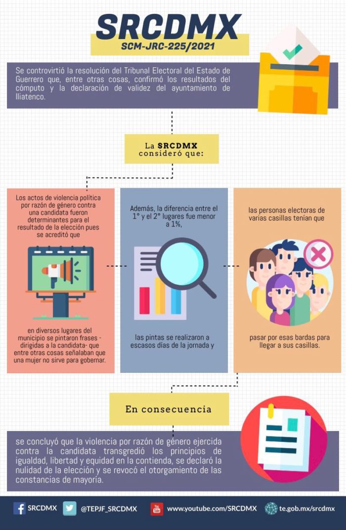 El proyecto aprobado fue presentado por la ponencia de la magistrada Mónica Aralí Soto Fregoso, el cual se derivó de pintas con leyendas que menoscabaron la imagen de la candidata del partido Movimiento Ciudadano, hechos que constituyeron violencia política en razón de género que fueron acreditados tanto por el Tribunal Electoral del Estado de Guerrero, como por la Sala Regional, con la diferencia de que esta última consideró que sí influyeron en el resultado de la elección, por lo que declaró la nulidad de los comicios del Ayuntamiento de Iliatenco.