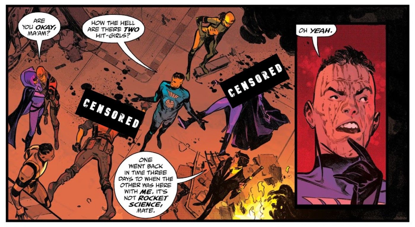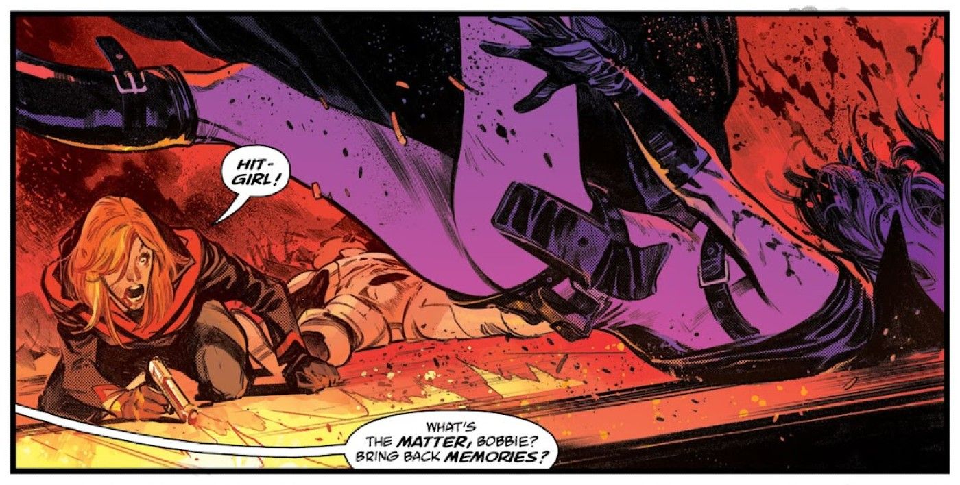 “/> Afortunadamente, en un giro final, se señala que en realidad hay dos Hit-Girls en Gran juego canon: la versión que retrocedió en el tiempo para salvar a los héroes y la versión que ahora existe en la línea de tiempo alterada. Esto deja Una Hit-Girl sigue viva en el universo compartido en curso de Millarverse.