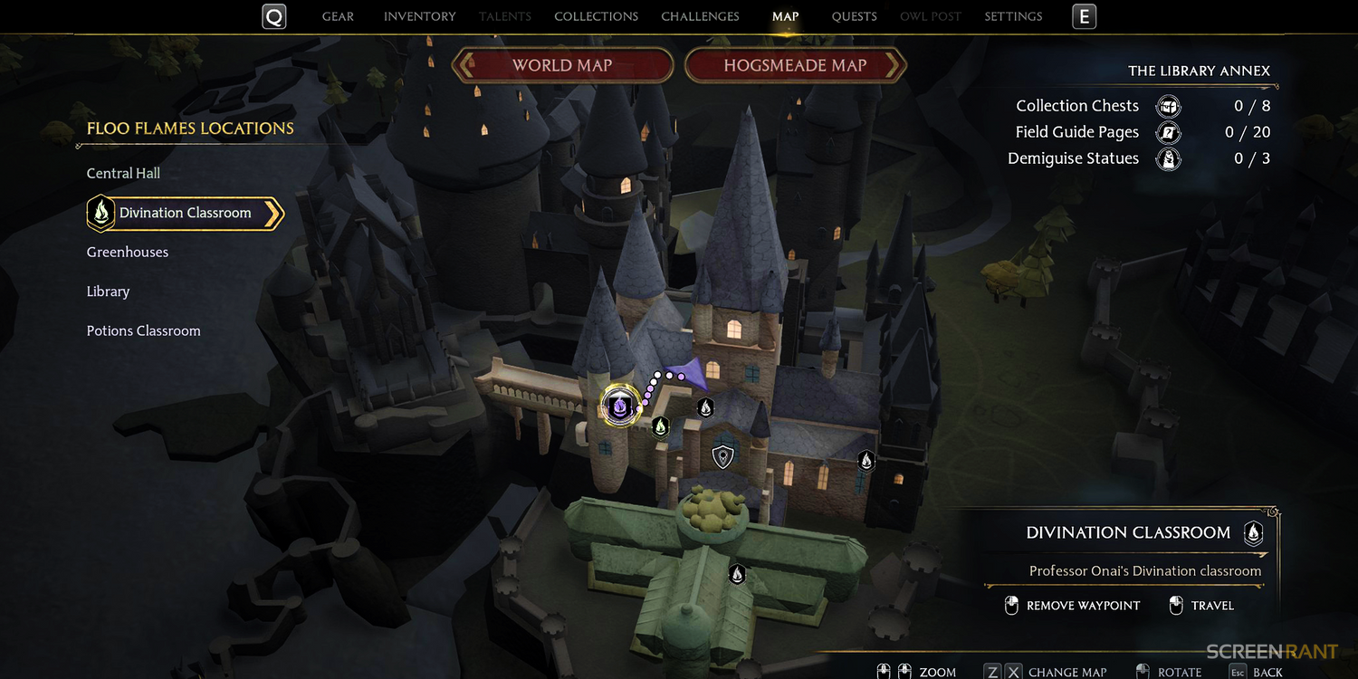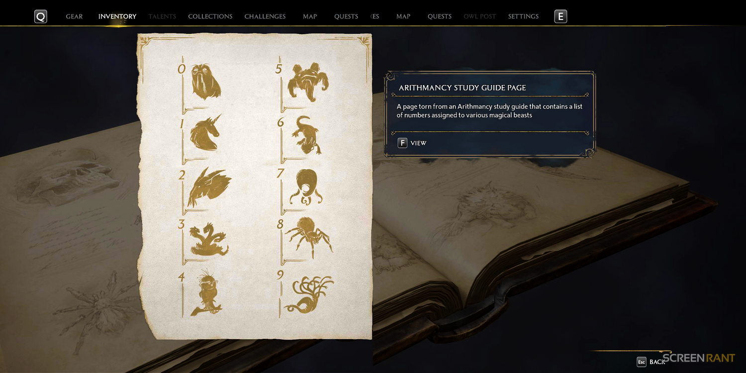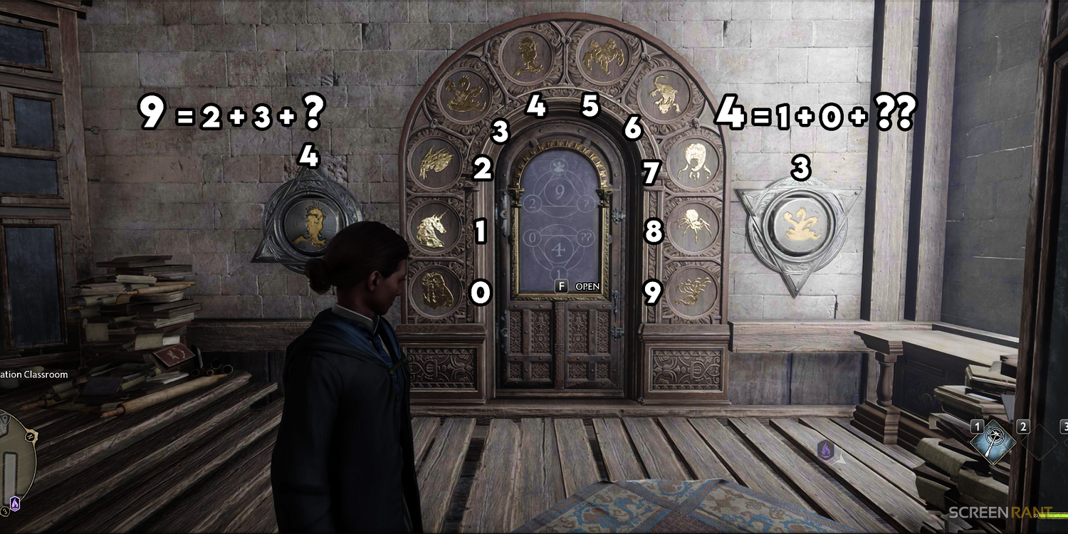 Finalmente, encontrarás una puerta en Legado de Hogwarts que no se abre usando el hechizo Alohomora y en su lugar requiere que resuelvas un acertijo matemático de aritmancia. Estas puertas suelen tener animales que corresponden a números que deben girarse en el arco que rodea estas puertas. Se recomienda desbloquear estas puertas, ya que le permitirá recolectar botín y otros tesoros valiosos que no se encuentran en otros cofres.