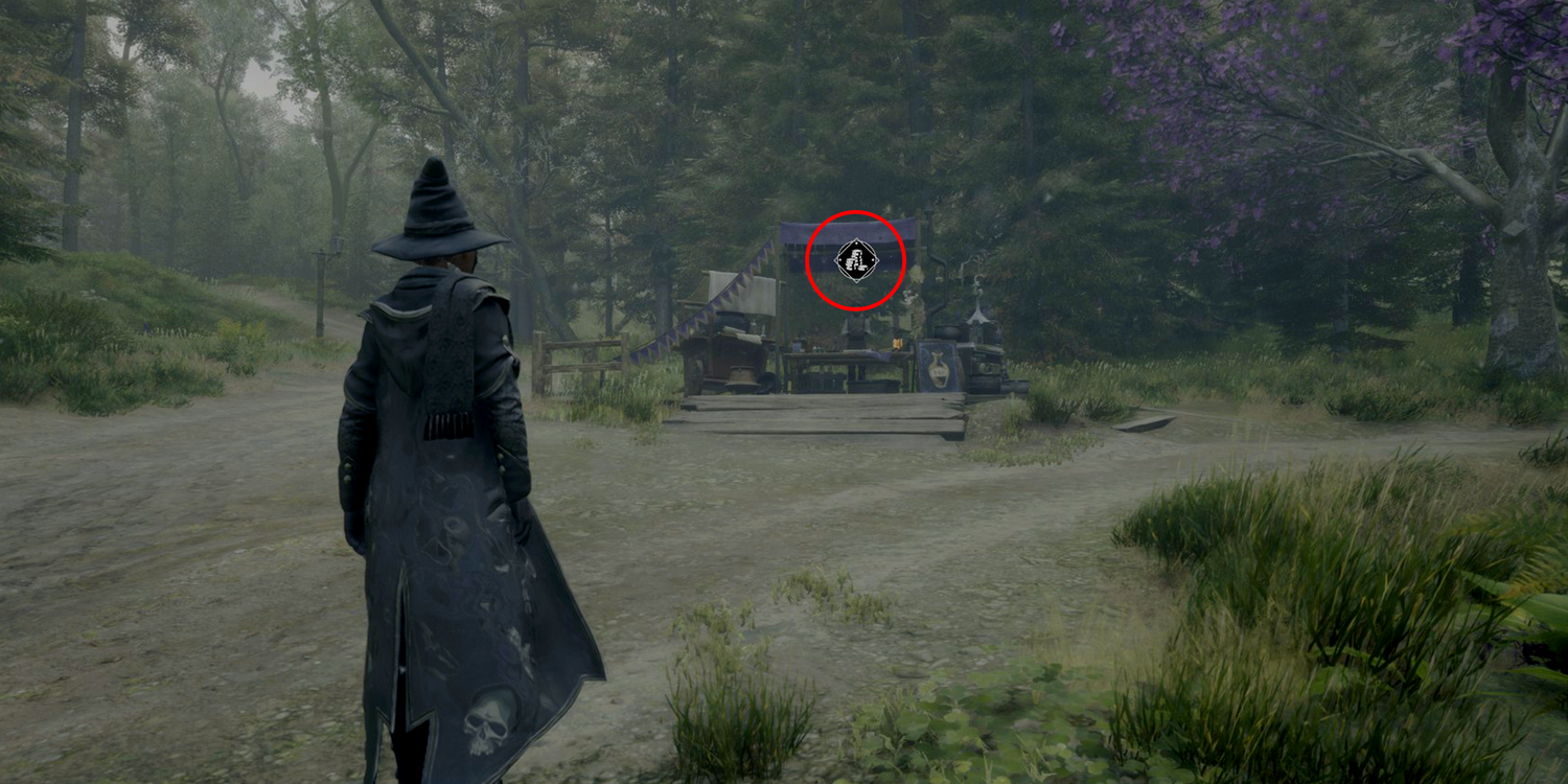 Hogsmeade es uno de los lugares más fáciles para encontrar un vendedor; cualquiera de los íconos especiales que se muestran en el mapa tiene un vendedor dentro del edificio de su tienda. También hay varios comerciantes repartidos por el mundo abierto en muchos lugares. Cualquier NPC con el icono de comerciante representado en la imagen de arriba puede comprar equipo antiguo a cambio de galeones, independientemente de su profesión.