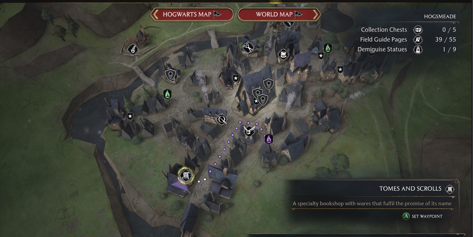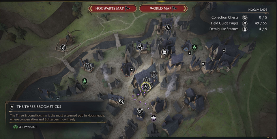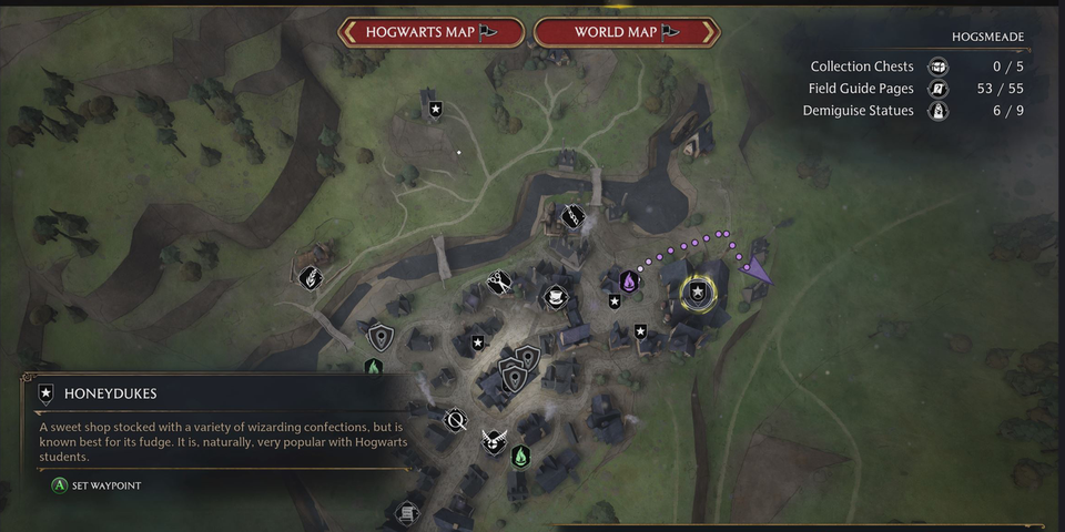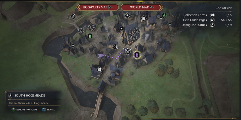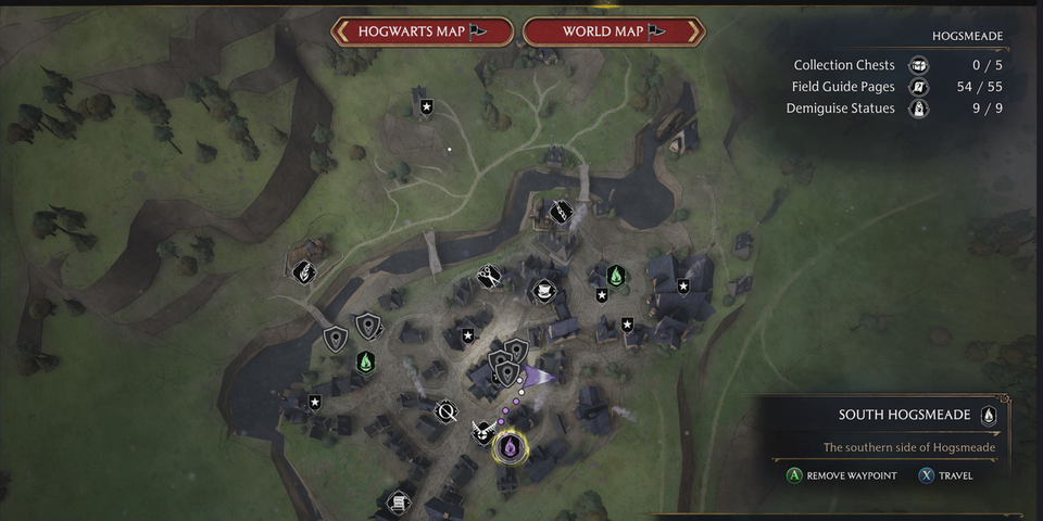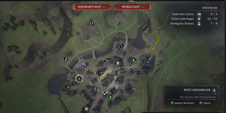 Dado que muchos coleccionables importantes están ocultos detrás de las puertas cerradas en Legado de Hogwartsincluido Páginas de guía de campo, habitaciones secretas, cofres e incluso las estatuas de semidioses restantesesto es algo que querrás priorizar desde el principio. Mientras que el número de estatuas varía por ubicación, Hogsmeade tiene un total de 9 estatuas de semidioses oculto en todo su mapa.