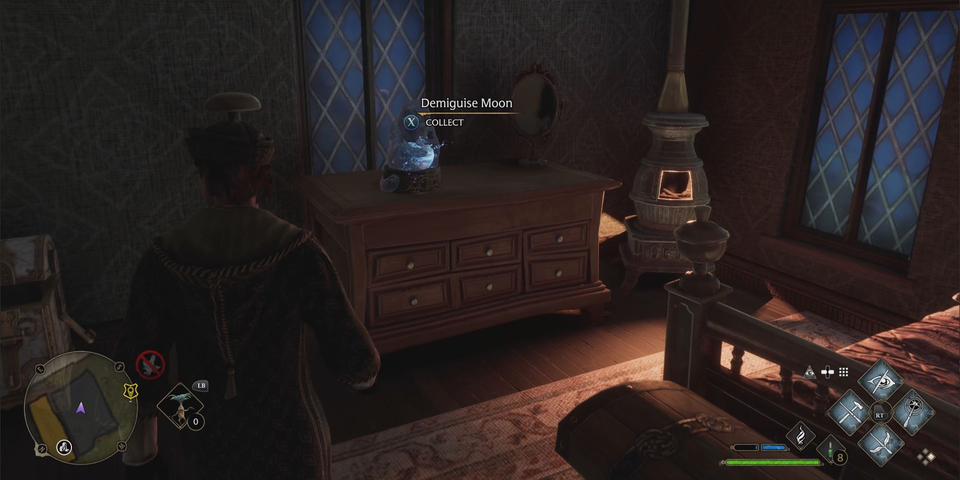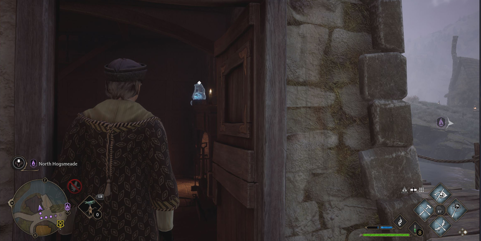 Al norte de West Hogsmeade Floo Flame está las pociones de J. Pippin. El pequeño edificio al este de este proveedor tiene un Bloque de nivel 2 que requiere Alohomora 2. Regrese a este si Gladwin Moon no ha recibido suficientes estatuas para nivelar su hechizo de Alohomora todavía. La estatua estará en un tocador en este edificio. |