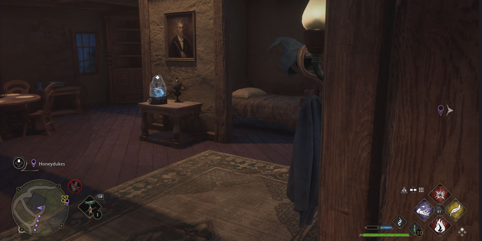 Honeydukes se encuentra en la región noreste de Hogsmeade, justo al este del North Hogsmeade Floo Flame. Viaje de regreso detrás de este gran edificio para ver dos más pequeños. El edificio Sur tiene un bloqueo de nivel 1. La estatua estará dentro de un pequeño tocador en el centro de la habitación. |
