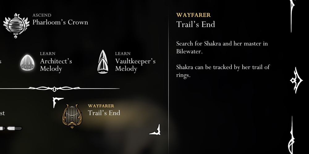 Al igual que cualquier otra búsqueda de seguimiento, primero tendrá que dirigirse a este lugar marcado en el área de Bilewer de Pharloom a las afueras de la estación de Bell Beast para encontrar los primeros rastros del sendero de Shakra. Dado la cantidad de enemigos mortales y las piscinas llenas de Muckmaggots, recomendaría tomar herramientas defensivas como la corona de pureza para evitar daños innecesarios, o omitir el segmento por completo llegando a través del paso secreto de Groal desde los conductos putrificados.
