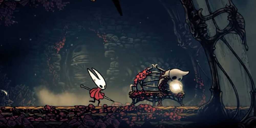 Dirígete al centro de esta área, donde puedes ver un error encarcelado en una celda. Sube a este NPC, luego usa la capacidad de flotación de Hornet para deslizar más allá de los picos para llegar al prisionero. La simple puerta es la puerta de su celda. |