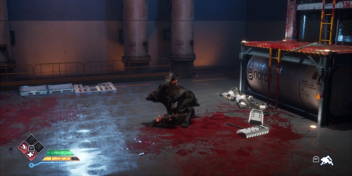 sangre terrestre captura el espíritu del juego de rol de mesa en la forma en que representa la fuerza de los hombres lobo: la forma Crinos de Cahal puede romper objetos en el entorno al entrar en contacto con ellos, y los enemigos de tamaño humano no durarán mucho con un solo golpe de su garra. . El jugador necesitará equilibrar las opciones disponibles para sobrevivir, ya que la mayoría de las peleas implican ser superado en número por enemigos con armas a distancia. Un solo gruñido humano no durará mucho, pero un escuadrón con una mezcla de armas que disparan balas de plata es un peligro para Cahal.