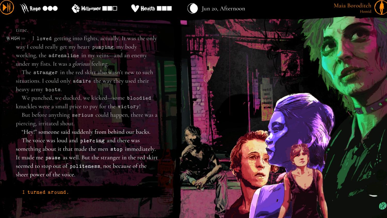“/> El aspecto más llamativo de Corazón del bosque son sus imágenes. El arte que acompaña al texto del juego suele ser magnífico, a veces grotesco, pero siempre llamativo. Coincide con el tono de un forastero que llega a un lugar que pretende ser el epítome de la naturaleza pero que también es completamente antinatural y poco acogedor. La calidad de la escritura es fantástica, lo cual es vital en las novelas visuales y la historia de Corazón del bosque es atractivo en todo momento. El juego también hace un excelente trabajo al presentar a nuevos jugadores el mundo de Hombre lobo: el apocalipsis, que recibirá una nueva edición en el futuro.