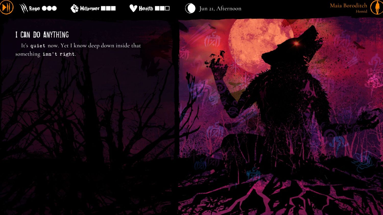 Hombre lobo: El Apocalipsis – Corazón del bosque es la última novela visual ambientada en la franquicia World of Darkness, desarrollada por Different Tales y publicada por Walkabout Games. La historia es una historia atractiva y de múltiples ramificaciones que actúa como una excelente introducción al escenario, pero termina justo cuando comienza a ponerse interesante. Hombre lobo: el apocalipsis es un juego de rol de mesa ambientado en el mismo universo que Vampiro: La Mascarada, que también ha visto una serie de adaptaciones de videojuegos en los últimos años.