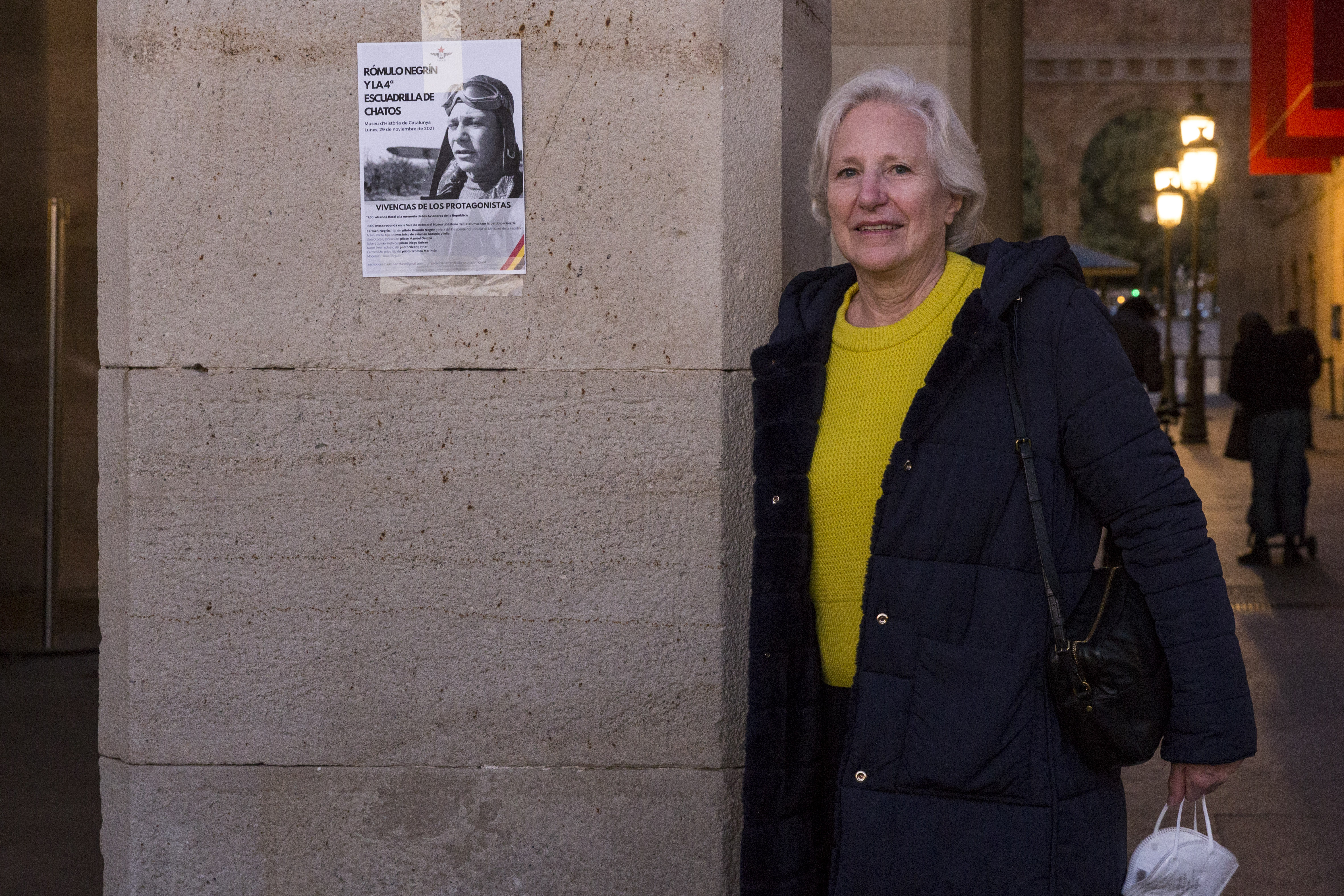 Carmen Negrín, nieta del presidente Juan Negrín e hija del piloto de caza Rómulo Negrín, durante el homenaje a los aviadores republicanos.Joan Sanchez