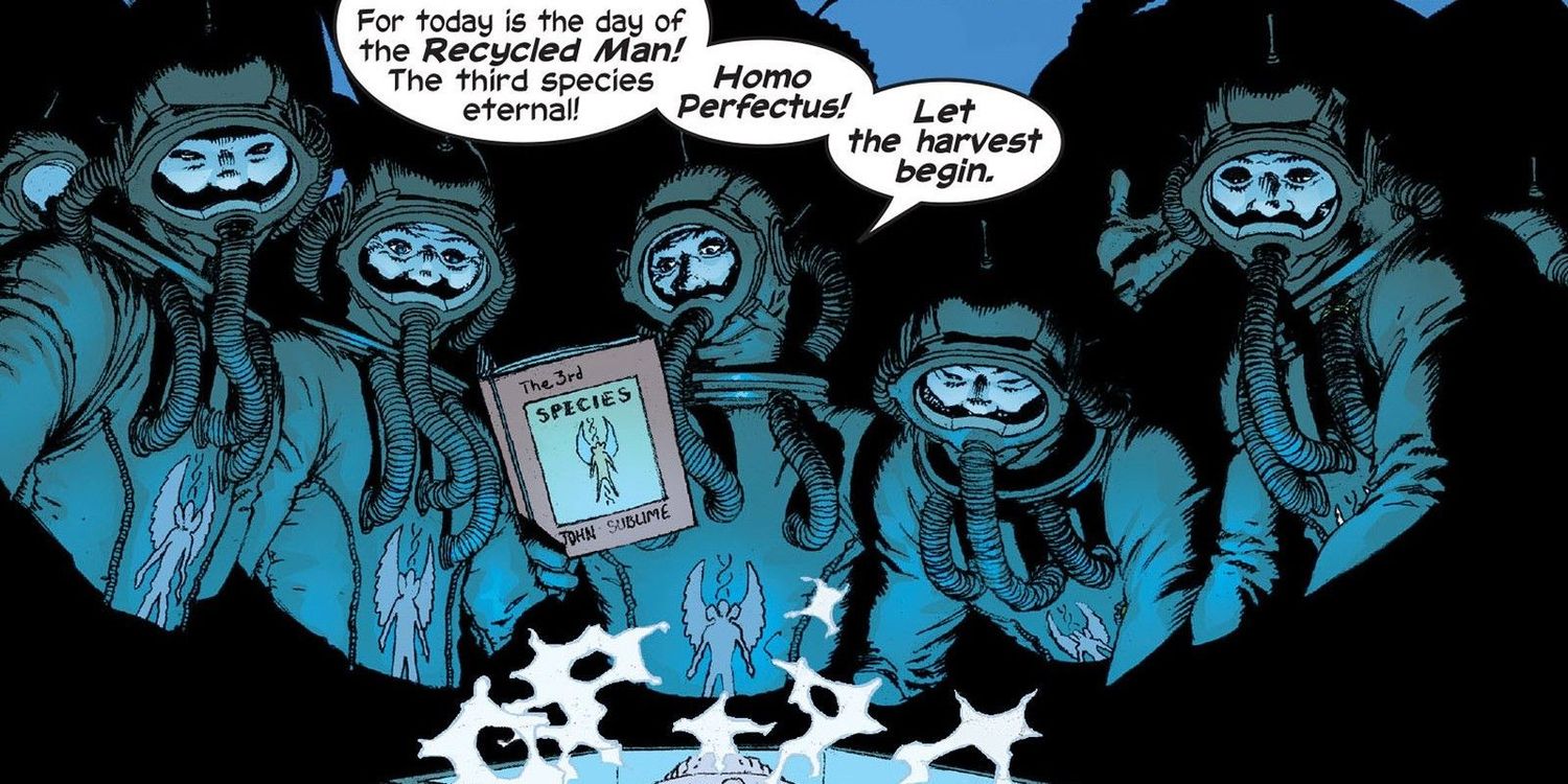 Grant Morrison Nuevos X-Men La carrera, que comenzó en 2001, estuvo llena de ideas innovadoras, pero pocas fueron tan deliciosamente aterradoras para los lectores como los U-Men, una secta inspirada en el libro del Dr. John Sublime “La Tercera Especie”.” – un texto que defendía la idea del “Hombre Reciclado”, humanos que se han injertado partes mutantes en sí mismos para formar la tercera especie del mismo nombre, denominada “un hombre perfecto” La doctrina estaba, por supuesto, verdaderamente trastornada, y como Morrison continuaría explicando, era de hecho un producto del antagonismo de Sublime hacia toda la vida, tanto humana como mutante, y su deseo de usarlos para destruirse unos a otros.