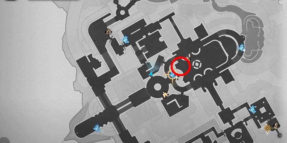 Junto a una columna en el área de reunión, pasando las escaleras occidentales desde el punto de teletransporte. Aquí tendrás que Rebobinar el tiempo para reformar la Llama. restos de bronce rotos en el suelo. |
