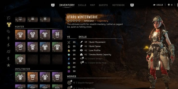 El Utaru Winterweave es la armadura legendaria más mortífera que aprovecha Horizonte Prohibido OesteLas armas y trampas de ‘s a través del sigilo. Además, las habilidades del equipo giran en torno a asesinar enemigos de manera rápida y eficiente. La armadura también es ideal para jugadores sigilosos con habilidades que van desde el movimiento silencioso y la lanza silenciosa hasta el perfil bajo y una mayor capacidad de bomba de humo. La armadura es para jugadores que han dominado Horizonte Prohibido OesteModo de juego sigiloso.