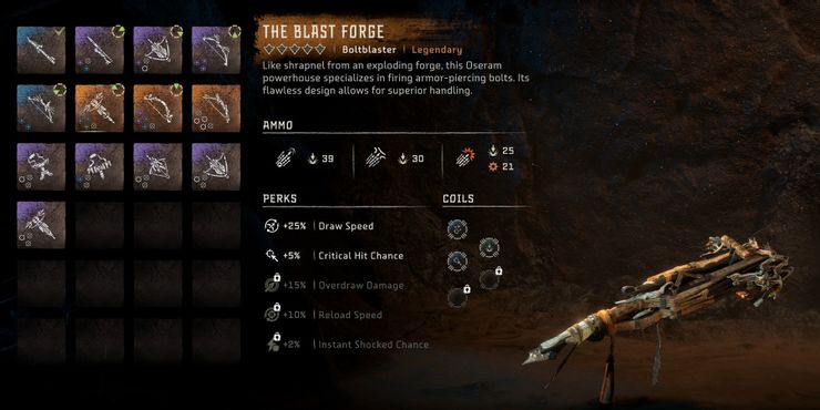 El Blast Forge, un Boltblaster legendario, es un arma vendida por Dukkah. El arma costará 80 Arena Medals y se puede comprar en The Maw of the Arena cerca de Memorial Grove. Los jugadores desbloquearán Arena Challenges después de completar la misión de la historia principal, “El Kulrut” y hablando con Kalla. Los desafíos de Arena deben completarse dentro del límite de tiempo, y cuanto antes terminen, más Medallas ganará Aloy en Horizonte Prohibido Oeste. Después de que los jugadores ganen al menos 80 medallas, pueden comprar The Blast Forge.