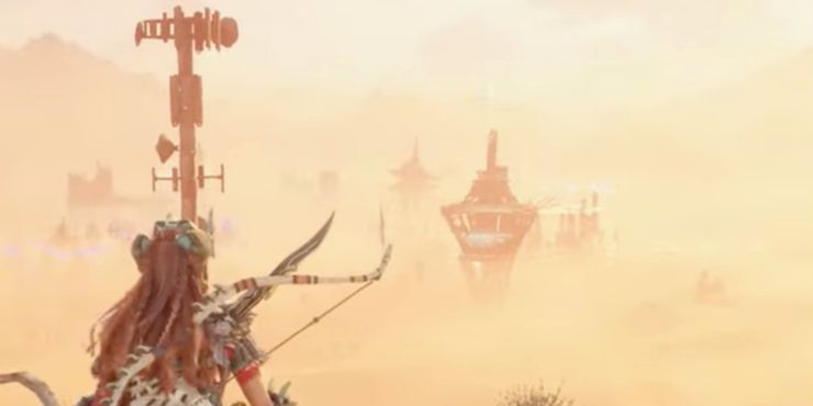Sin el Sunwing, Aloy tendrá que escalar todo el camino hasta la parte superior de la estructura metálica cercana. Desde la pequeña plataforma cuadrada, Aloy puede caminar hacia el poste adjunto para alinear la imagen con la ciudad en ruinas. La isla de Spires es el último punto de vista en Horizonte Prohibido Oestey completarlo desbloqueará la ubicación de la recompensa donde los jugadores pueden reclamar un cofre de objetos valiosos antiguos.