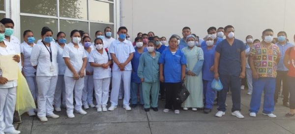 En Tuxtepec, Oaxaca, más de cien trabajadores del Hospital General protestaron frente a las instalaciones y mediante un documento solicitaron el cumplimiento urgente de las medidas de protección, aseguran que están en riesgo de sufrir un contagio masivo de coronavirus, debido a que se exponen sin las medidas de protección requeridas por la Organización Mundial de la Salud (OMS).
