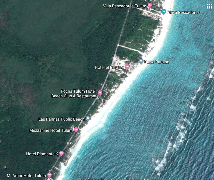 Entre los complejos que invaden terrenos de propiedad federal se encuentra el hotel Diamante K -propiedad de Roberto Palazuelos-, hotel Mi Amor, Kore Tulum Retreat, hostal Pocná, hotel El Paraíso, Ikal Butique, hotel Villa Pescadores, cabañas Zazil Kin, hotel Caleta Tankah, parte del Pavo Real Beach Resort y el Dreams Tulum Resort, éste último, con una ocupación de más de 15 hectáreas.