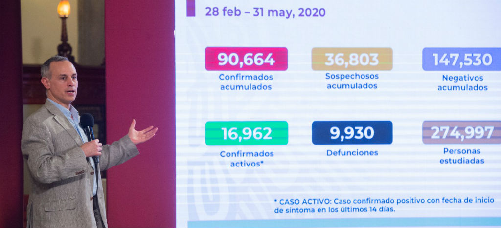 El subsecretario de Prevención y Promoción de la Salud dio a conocer que en México se contabilizan 90 mil 664 casos positivos de coronavirus; así como 9 mil 930 defunciones.